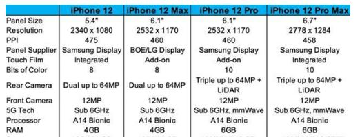 iPhone12系列產(chǎn)品所有都選用了OLED控制面板,iPhone表明,它是為iPhone尤其訂制的。iPhone12則選用全新升級SuperRetinaXDR顯示屏適用HDR文件格式,2532x1170屏幕分辨率,顯示屏密達(dá)到461080pi,相對密度相比iPhone11有做到1倍的提高,而屏幕最大光澤度達(dá)到1200nits。iPhone12Mini顯示屏為5.4英寸,iPhone12Pro顯示屏尺寸如傳言一樣,為6.一寸與6.7寸的iPhone12ProMax;分辯率為有史以來最大,2778*1284,并有458ppi。
