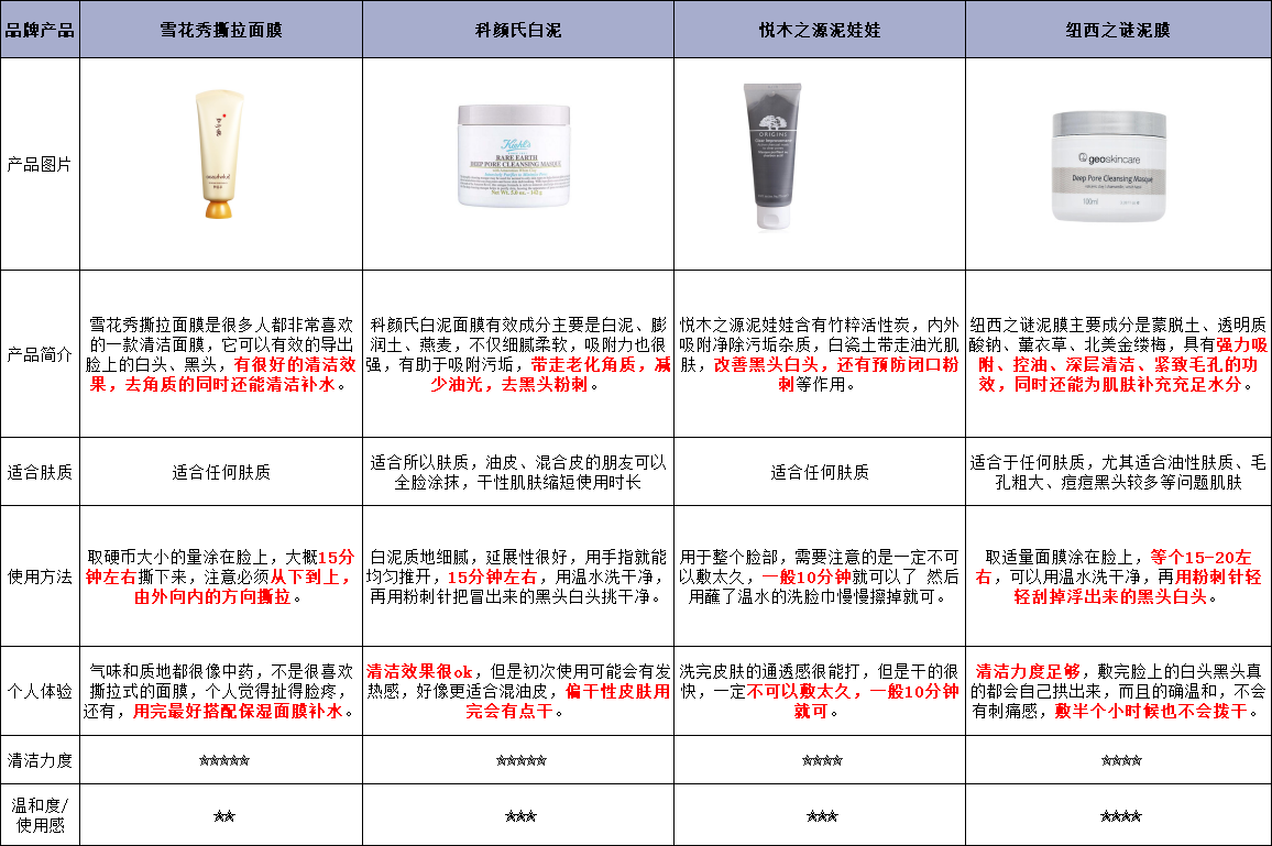 科顏氏、悅木之源、雪花秀、紐西之謎深度測評?。?!本人膚質(zhì)偏干,但是T字區(qū)出油很厲害,黑頭、毛孔粗大等常見問題,我的臉上都有,嗚嗚嗚...前前后后用過很多清潔泥膜,一周兩次堅(jiān)持了很久,黑頭光光,嬌嫩白皙就是我本人。