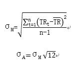 SigmaA表示歷史年化標(biāo)準(zhǔn)差(歷史年化波動(dòng)率);SigmaM 表示月度總回報(bào)率的標(biāo)準(zhǔn)差;n 表示計(jì)算期間所含月數(shù);TRt表示第 t個(gè)月的基金總回報(bào)率;TR 拔表示n 個(gè)月的基金總回報(bào)率平均值。