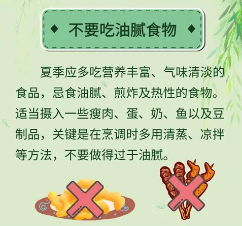 從飲食角度看,夏季飲食宜清淡,適當(dāng)多吃蔬菜、瘦肉和時(shí)令水果,少吃辛辣、肥甘厚味之品。尤其咱東北地區(qū)夏季是燒烤旺季,對(duì)于燒烤一要注意飲食衛(wèi)生,避免急性胃腸炎的發(fā)生;二要有所節(jié)制,避免過(guò)食肥甘而生內(nèi)熱,加之環(huán)境的暑熱,內(nèi)外相合而生百病。