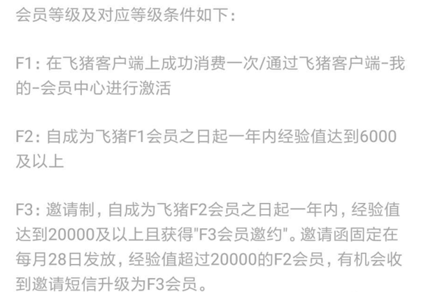 首先來看看飛豬f2/f3會(huì)員都有哪些權(quán)益,怎么才能快速升級(jí)?